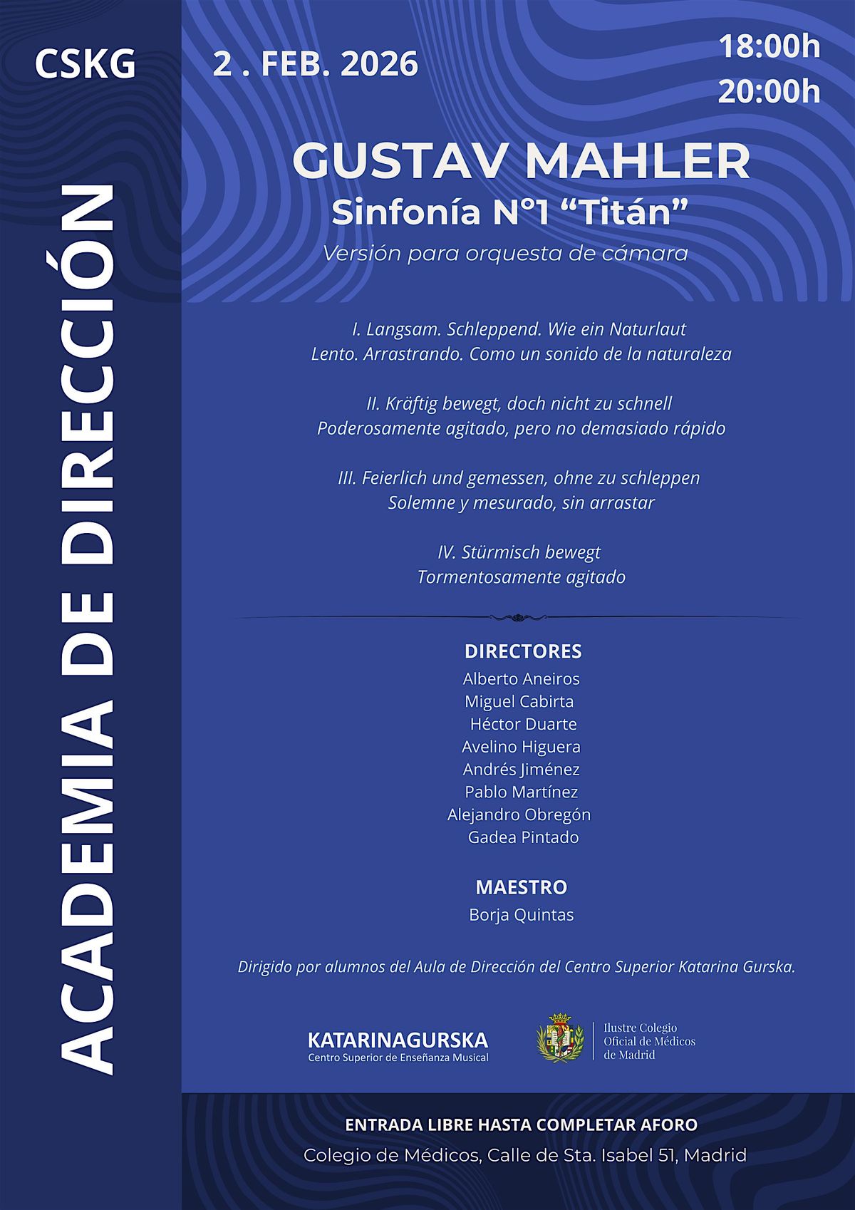 Versión para orquesta de cámara de la famosa sinfonía de Mahler de la mano de la Academia de Dirección del CSKG. Dos pases: 18.00h y 20.00hAbout this Event