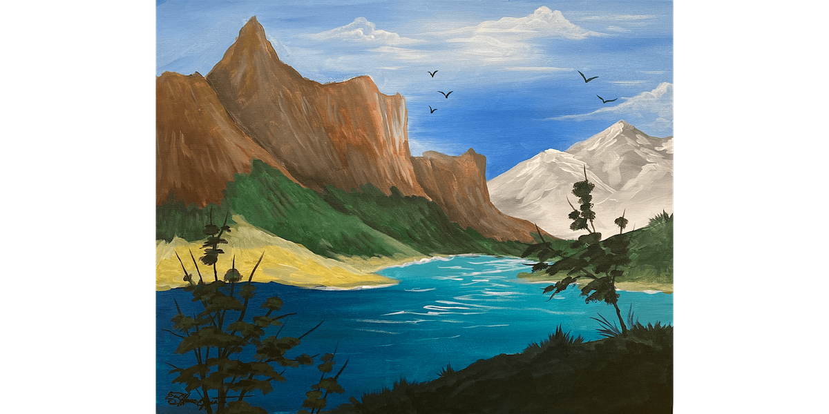 "Tranquility" - Thurs Mar 19, 7PM - Sip N Paint with us as we create this relaxing mountain lake scene together. No Experience needed.