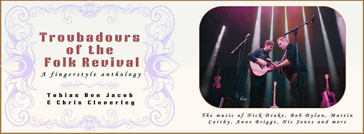 Reimagined now for a 21st Century audience, travel with contemporary folk guitarists Tobias Ben Jacob and Chris Cleverley on a journey spanning the UK, from the bustling shimmer of Soho’s Greek Street and the green pastures of Oxford University to the gothic facades of Edinburgh via North Yorkshire fishing towns and West Midlands industrial sprawl.