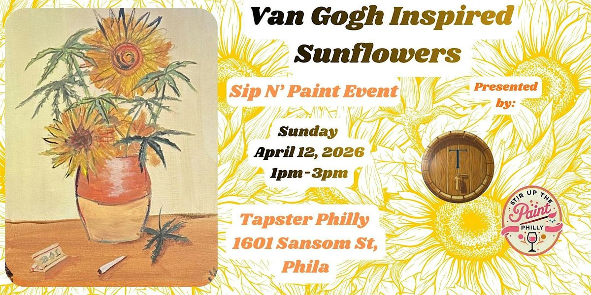 Get ready to channel your inner artist with our "Van Gogh Inspired Sunflowers" Paint and Sip event! This in-person gathering is perfect for anyone 21 and over who loves a good time with a splash of creativity. Enjoy some drinks, paint vibrant sunflowers, and vibe with fellow art lovers. No stress, just strokes and sips—see you at Tapster Philly!