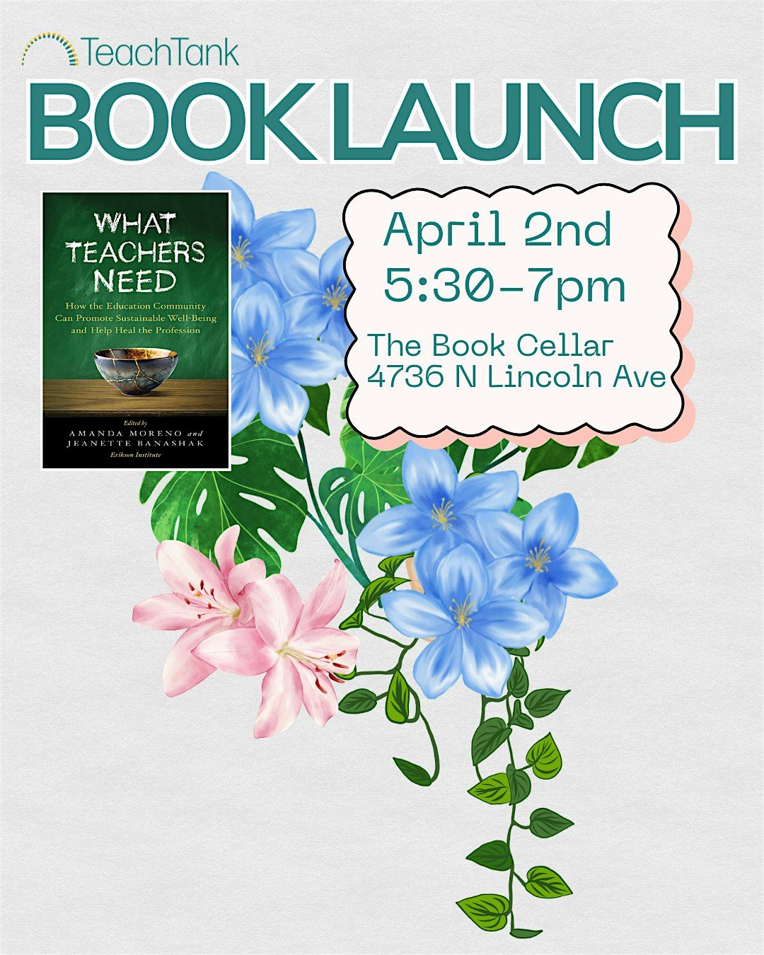 Teach Tank Presents an interactive book launch for educators. Co-authors and co-editors Amanda Moreno and Jeanette Banashak, both of the Erikson Institute, will discuss their book What Teachers Need: How the Education Community can Promote Sustainable Well-being and Help Heal the Profession. We'll share excerpts from the book to inspire deep reflection, storytelling, and connection. Joining us is chapter author and educator, Alexander Parker, along with several other chapter authors. Imagine with us what a world would look like where teachers are fully cared for and supported. We look forward to connecting with you!