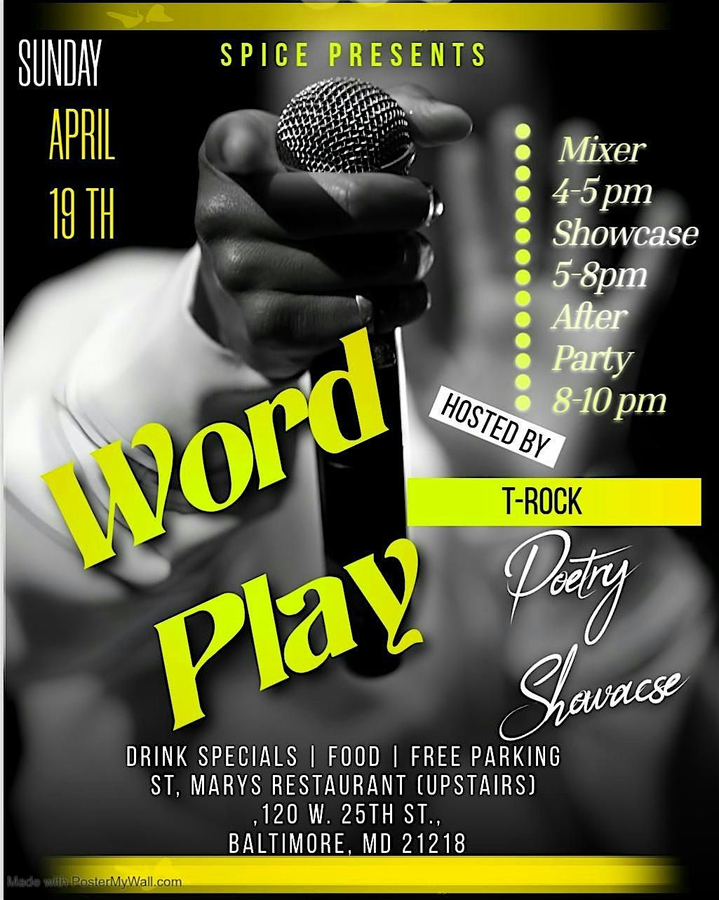 Get ready for an awesome time where words take center stage! WORD PLAY is a platform for all levels and Lovers of Poetry!