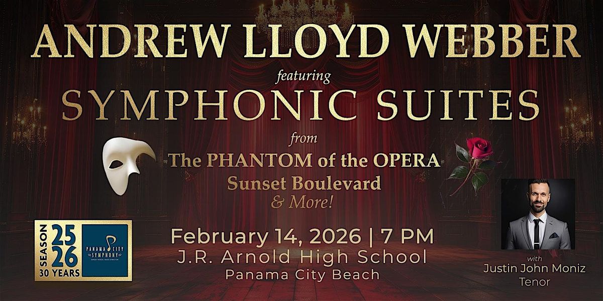 Panama City Symphony brings to life Andrew Lloyd Webber’s new and thrilling symphonic orchestrations of The Phantom of the Opera and Sunset Boulevard.
