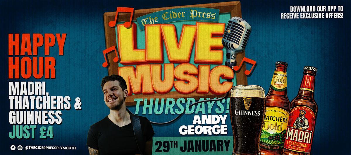 Live Music Thursdays at The Cider Press with Andy George! Happy Hour deals from 6pm-9pm!About this Event