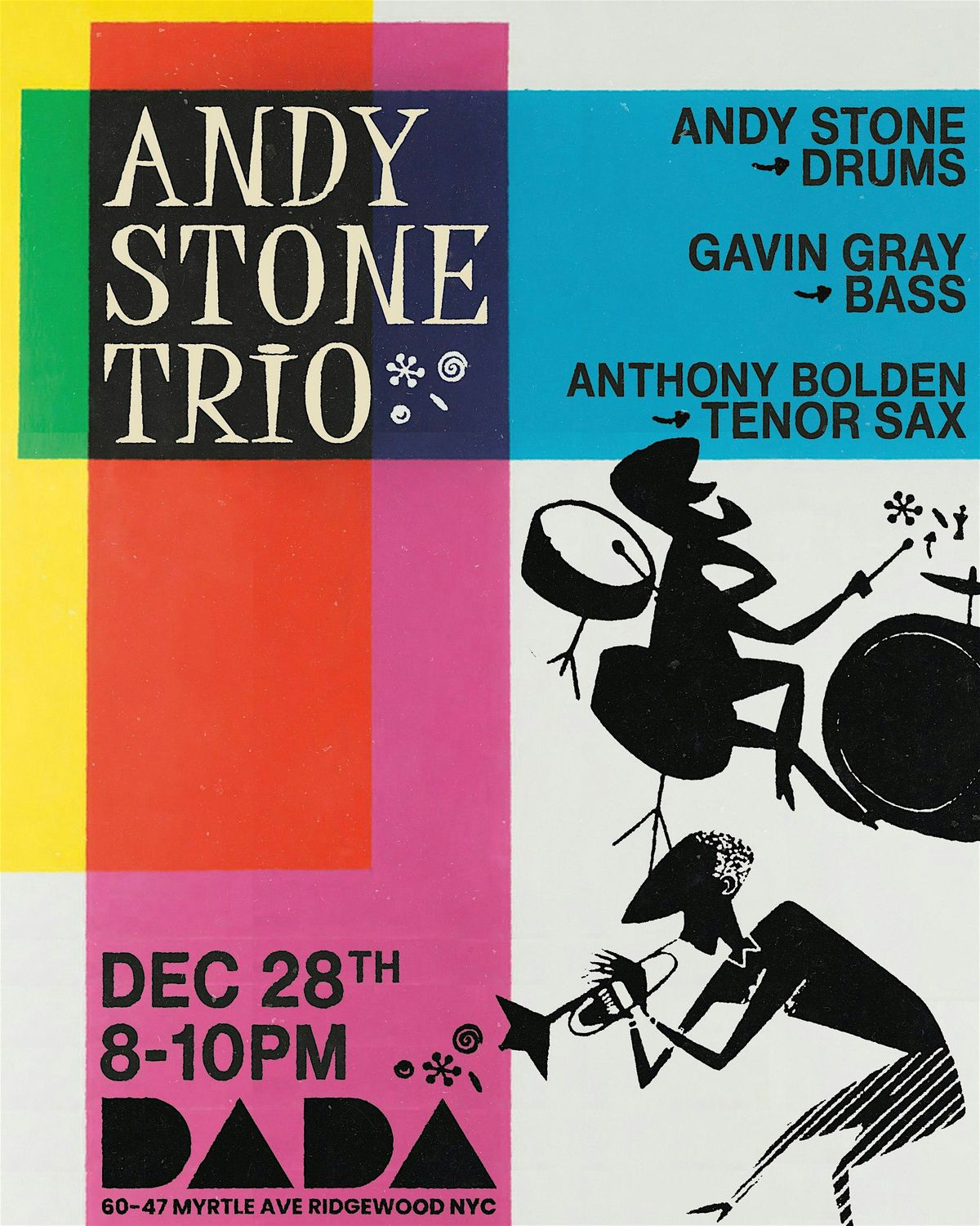The Andy Stone Trio features young musicians in the New York scene, Anthony Bolden (tenor sax), Gavin Gray (bass), Andy Stone (drums).