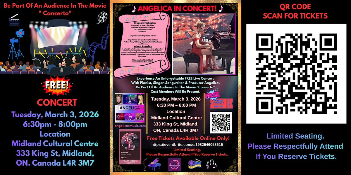 This special performance will be recorded live, with parts featured in the upcoming Movie “Concerto”, where Angelica stars as Diana Davis. A professional cast & film crew will be present, capturing both the concert and audience reactions — making this a truly unique cinematic and musical event. Angelica's CD's Will Be Available For Purchase At The Venue.