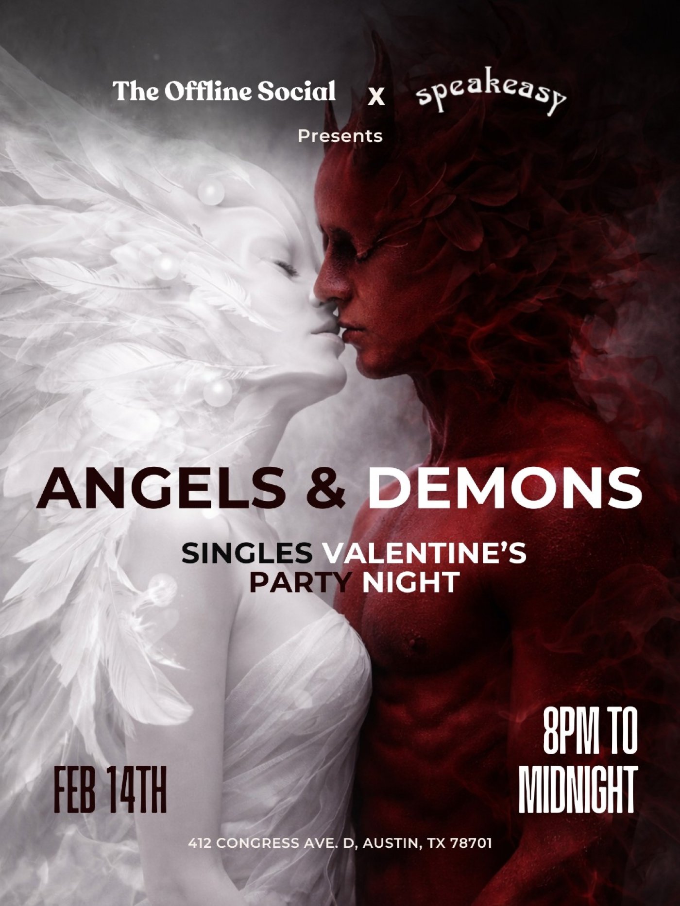 This Valentine’s Day, we’re taking over Speakeasy for an immersive Angels & Demons Singles Party, created for bold flirting, real chemistry, and unforgettable connections.