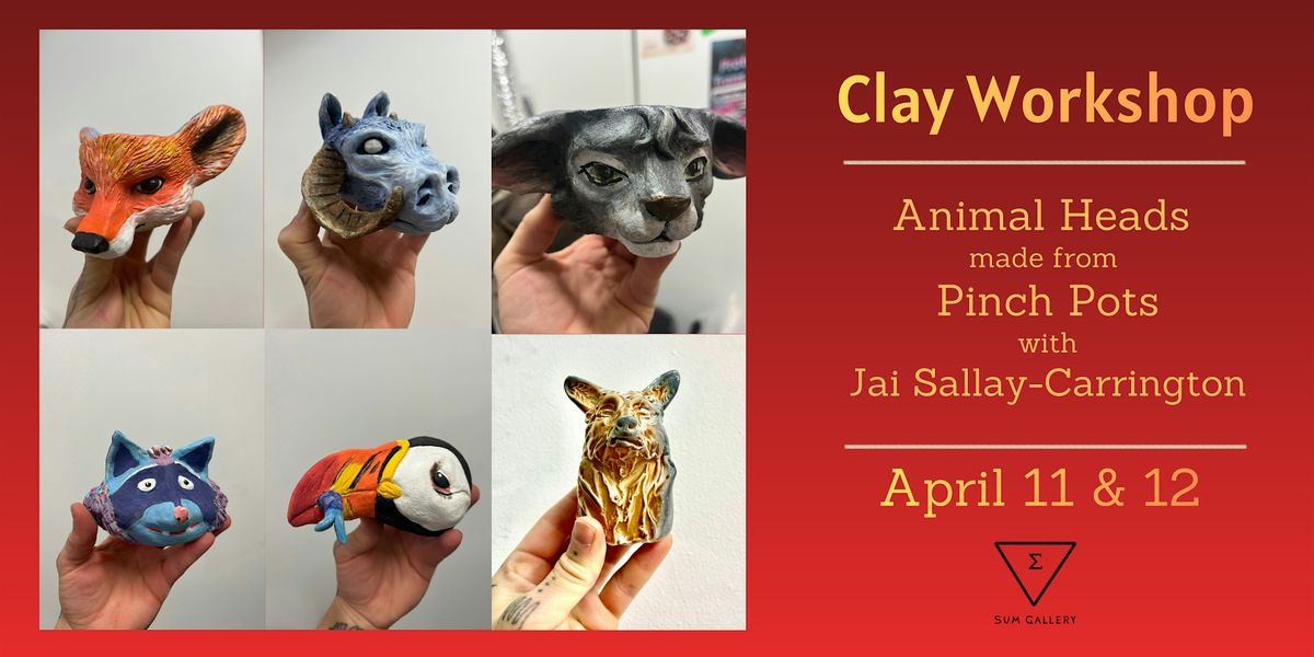 On Day 1 the heads will be sculpted with clay; on Day 2 they will be painted with underglaze. After the end of Day 2, Jai will fire the work in the kiln at their studio, Flaming Otter Ceramics (288 E Georgia, #130—one block from SUM gallery). Participants will be able to pick up the work from Flaming Otter Ceramics approx. one week later. Jai will email all participants when the animal heads are ready for pick up.
