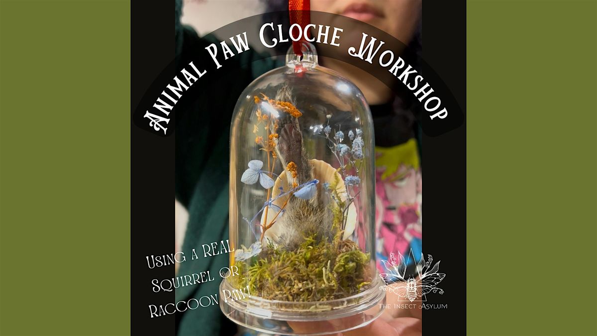 In this hands-on workshop, participants will create their own cloche display featuring real mummified raccoon or squirrel paws, thoughtfully arranged with natural materials to honor these creatures in a respectful, artful way.