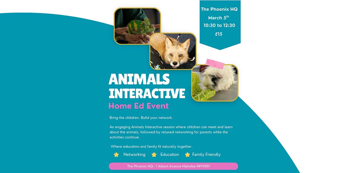 An engaging Animals Interactive session where children can meet and learn about the animals, followed by relaxed networking for parents while the activities continue.