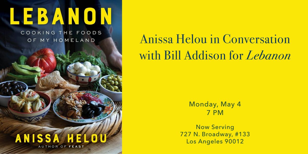 Anissa Helou, award-winning writer, journalist, and broadcaster in conversation for Lebanon: Cooking the Foods of My Homeland. Moderated by Bill Addision, Restaurant Critic, Los Angeles Times. Book signing to follow.
