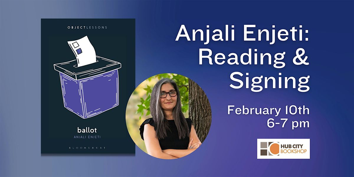 Join us for an evening with Hub City Press author Anjali Enjeti. She'll be reading from her new book, Ballot, which tells the story of voting and voting rights from her perspective as a Georgia voter who volunteered for the campaigns of Jon Ossoff, Stacey Abrams, Reverend Raphael Warnock, and others.