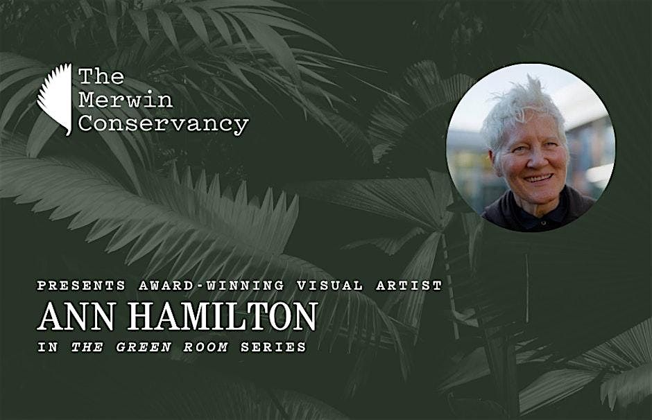 The Merwin Conservancy will present a reading and talk with renowned visual artist Ann Hamilton at the Hui No'eau Visual Arts Center. This program is part of The Merwin Conservancy’s series of popular arts and ecology literary events known as The Green Room.