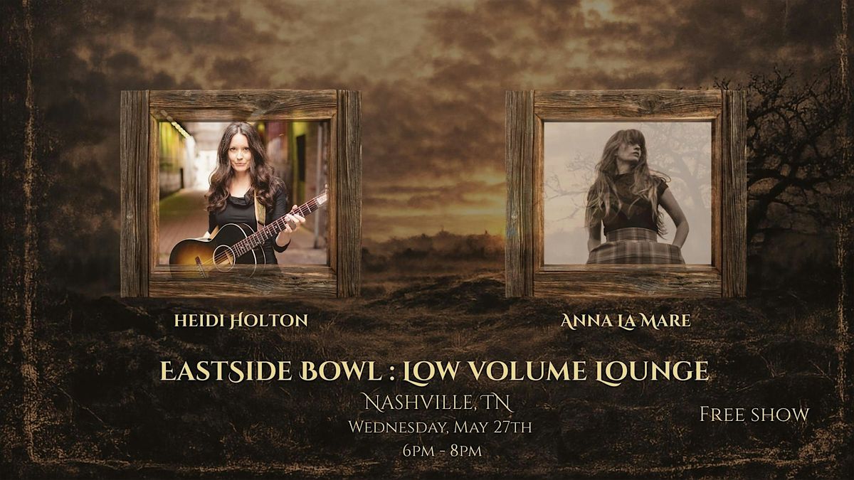 Folk Noir touring artist Anna La Mare and Nashville's own Heidi Holton share the stage for an intimate co-bill at Eastside Bowl's Low Volume Lounge — no opener, no headliner, just two songwriters bringing everything they've got.