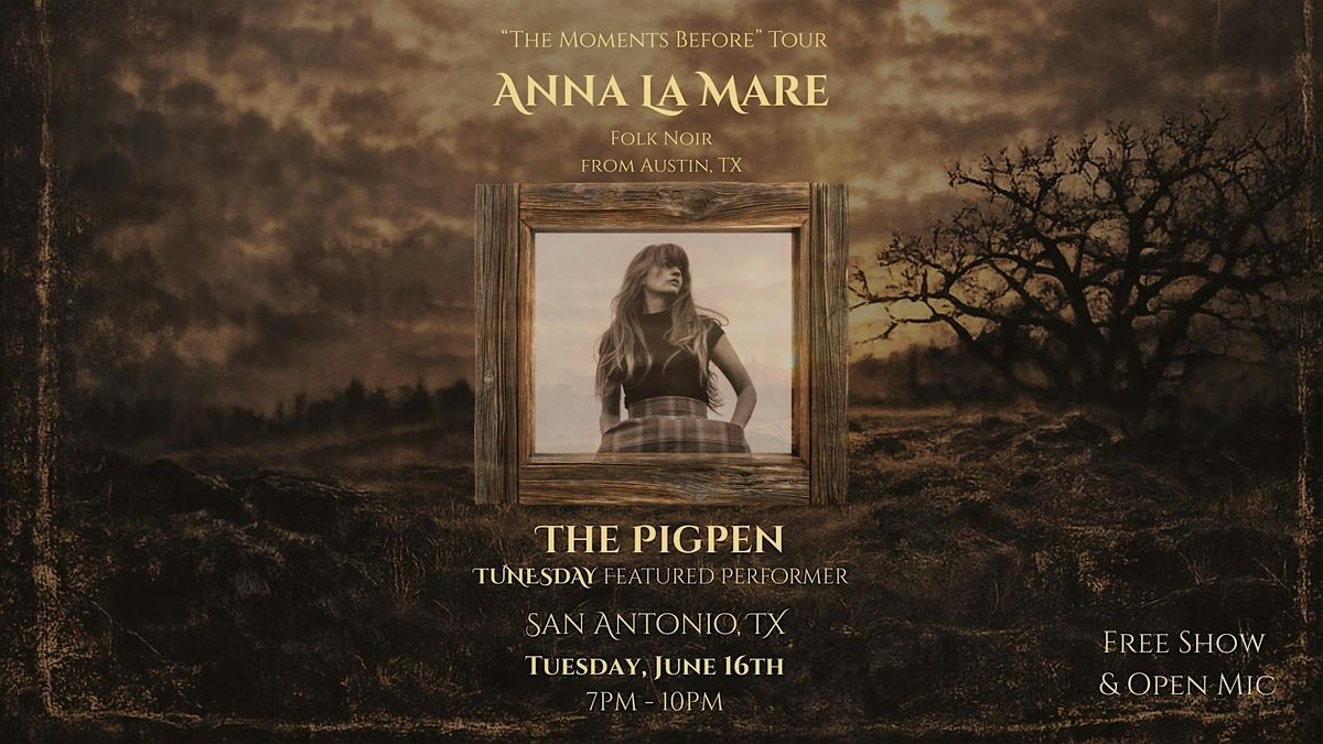 For 15 years, TuNesday at The Pigpen has been San Antonio's home for real songwriters. Tonight, the featured spot belongs to Folk Noir touring artist Anna La Mare, stopping through on her 2026 debut headline run.