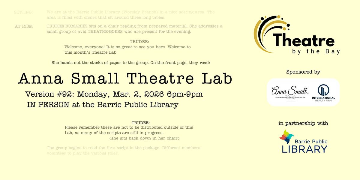 Publisher/HostBarrie Theatre Lab, hosted by Theatre by the Bay