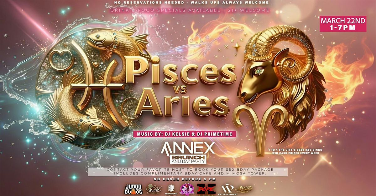 Annex Brunch & Day Party Sunday presents Pisces vs Aries on March 22About this Event