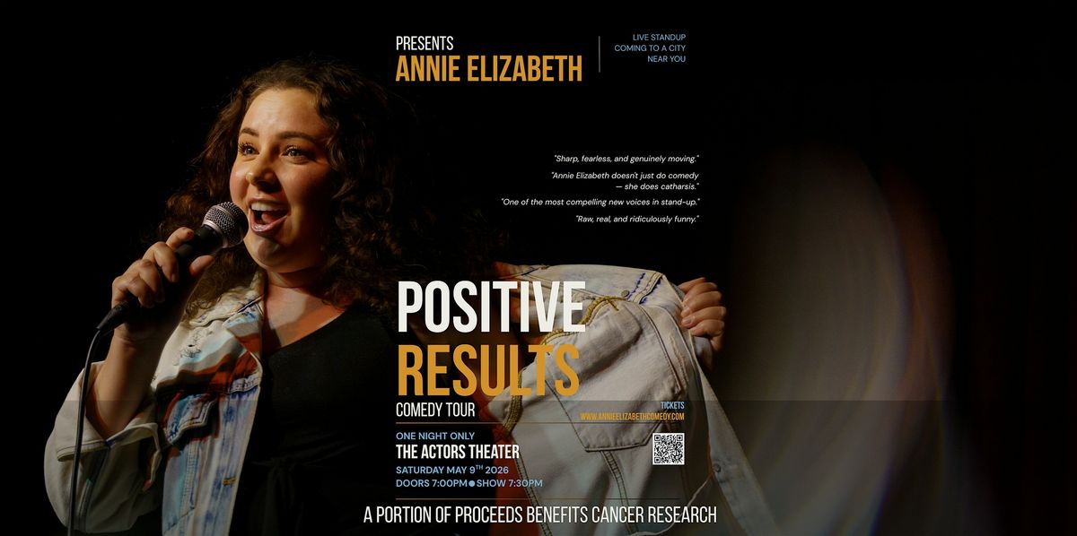 Positive Results is the show that came out of all of it. It's about getting the call no one wants, about the absurdity of sitting in a doctor's office and laughing anyway, about family and fear and the reckless, beautiful decision to finally go after your dreams. It is dark and funny and deeply human — and a portion of every ticket sold goes directly to the cancer research that saved Annie's life.
