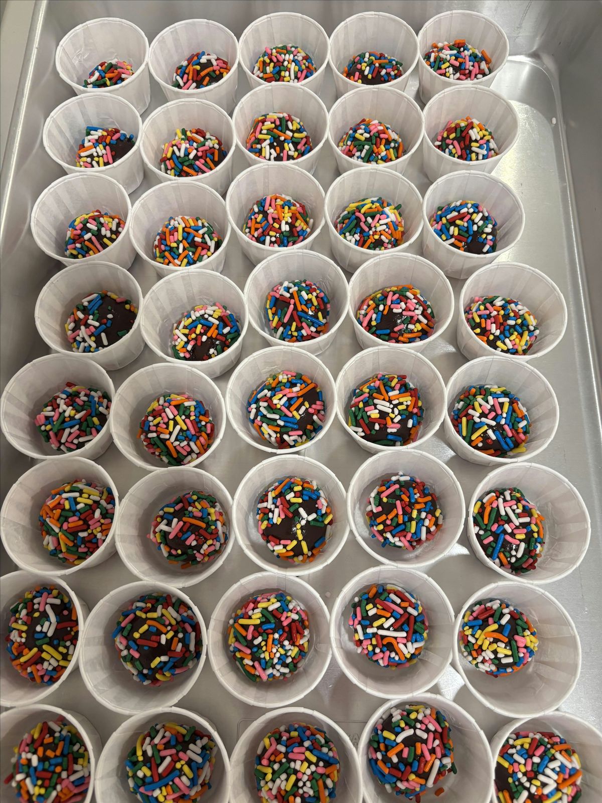 CALLING ALL CHOCOLATE LOVERS!! MAKE YOUR OWN Brazilain Brigadeiro version of a fudgy chocolate truffle IN THIS HANDS ON BAKING CLASS. YOU WORK INDIVIDUALLY IN MY CLASSES. Students can roll their candy in sprinkles, nuts or coconut.