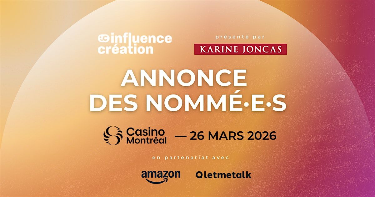 Le Casino de Montréal sera l’hôte d’un événement prestigieux réunissant plus de 250 acteurs clés de l’industrie de la culture et de la création de contenu au Québec. Lors de cette soirée exclusive, les nommé·e·s du Gala Influence Création 2026 présenté par Karine Joncas seront officiellement dévoilé·e·s, marquant ainsi un moment fort pour la reconnaissance du talent et de l’innovation dans le milieu.