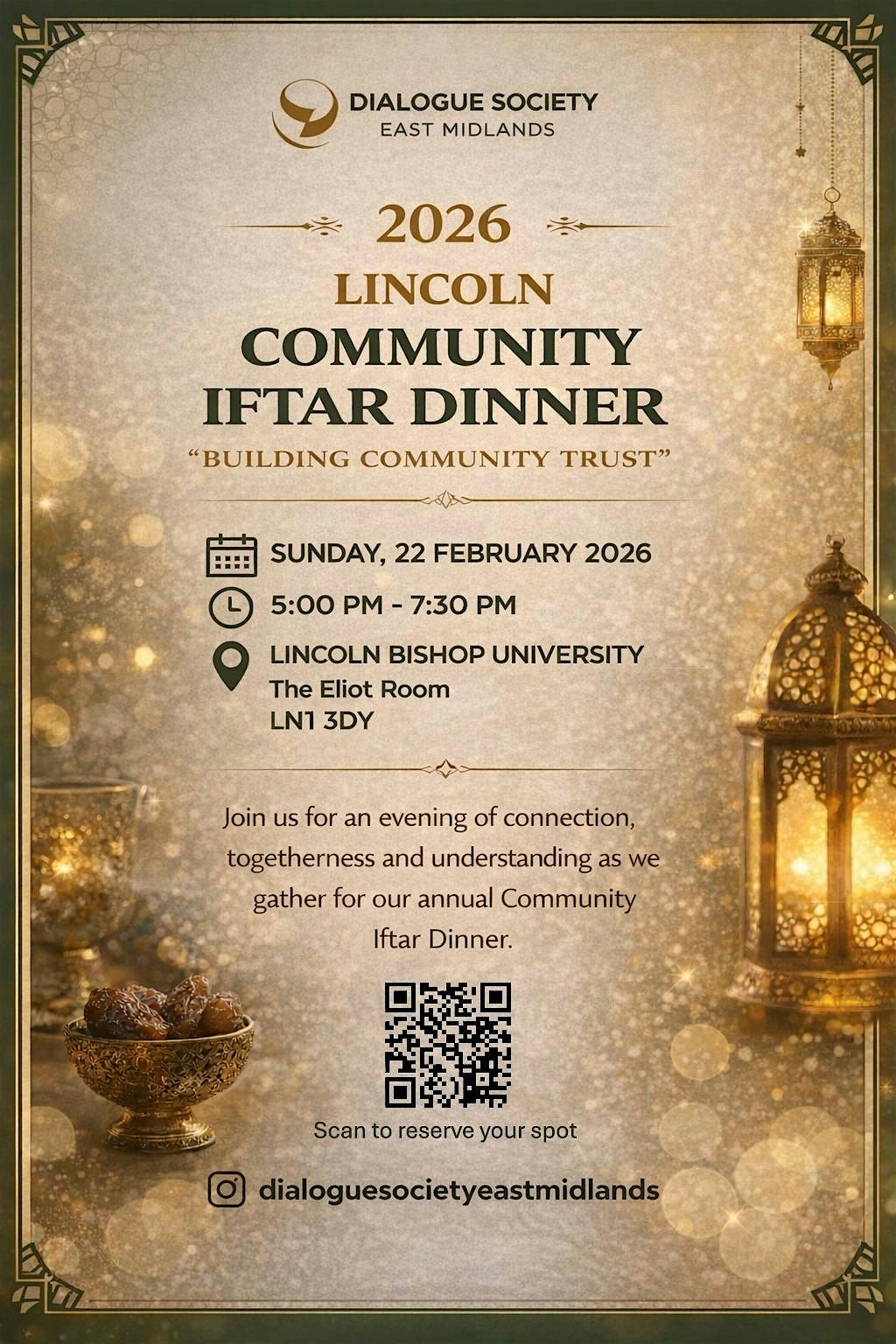 We are delighted to invite you to our 2026 Ramadan Community Dinner, themed “Building Community Trust.” This year’s celebration will bring together friends, neighbours, and partners to celebrate our shared commitment to building trust and connection within the community.