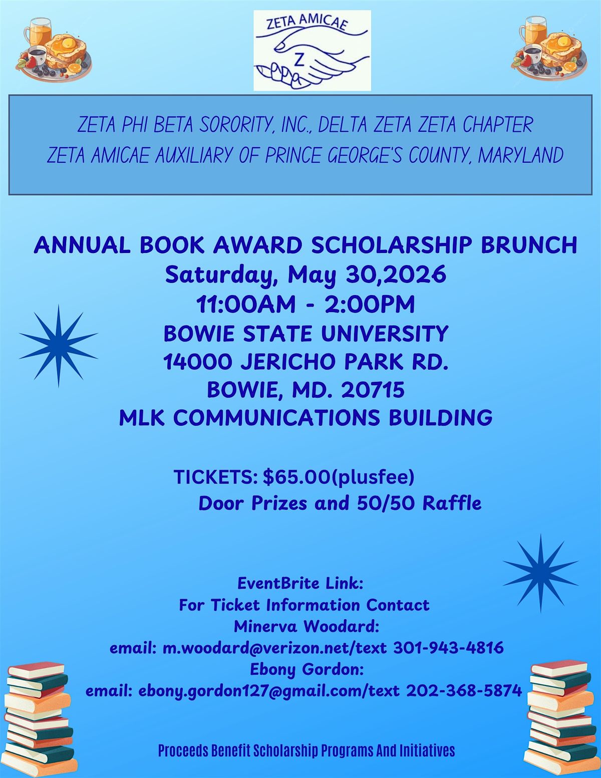 Join the Zeta Amicae of Prince George’s County, Maryland for our Annual Book Award Scholarship Brunch.