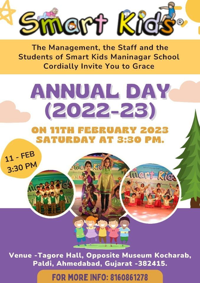 Smart Kids Maninagar School feels delighted to invite you all for Annual function.Your presence is extremely special. So please do come and celebrate children's performances with us.