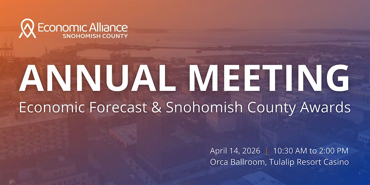 (EASC) proudly invites you to the 2026 Annual Meeting, Economic Forecast & Snohomish County Awards. Presented by Boeing, and in partnership with Herald Media and North Sound Media, this event brings together business leaders, policymakers, and community stakeholders to reflect on a year of impactful work driving economic vitality in Snohomish County.