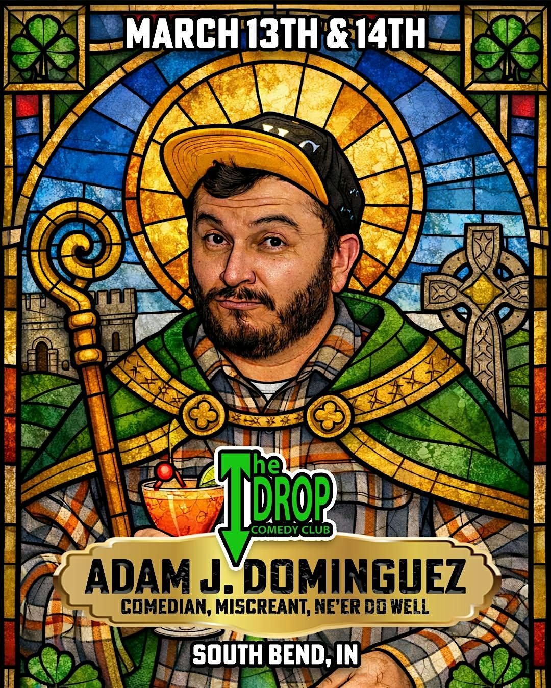 The Drop Comedy Club is pleased to welcome Nationally Touring , our very own Annual St. Patrick's Day Weekend Headliner, Adam Dominguez, featuring Johnny Castillo on March 13-14, 2026!!