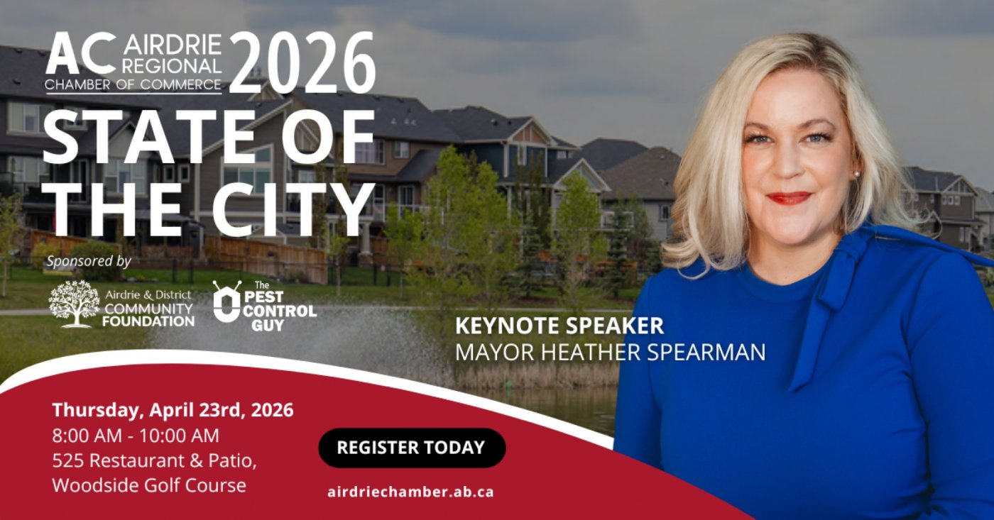 The Airdrie Regional Chamber of Commerce invites you to attend the Annual State of the City Address with the City of Airdrie's very own Mayor Heather Spearman as our keynote speaker.