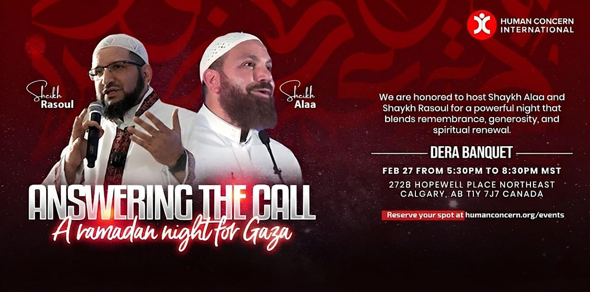 Salam Calgarians , Join us this Ramadan for a heartfelt evening of solidarity and support for Gaza. This community gathering is an opportunity to come together in the spirit of compassion, reflection, and unity, as we stand with those affected by ongoing hardship.