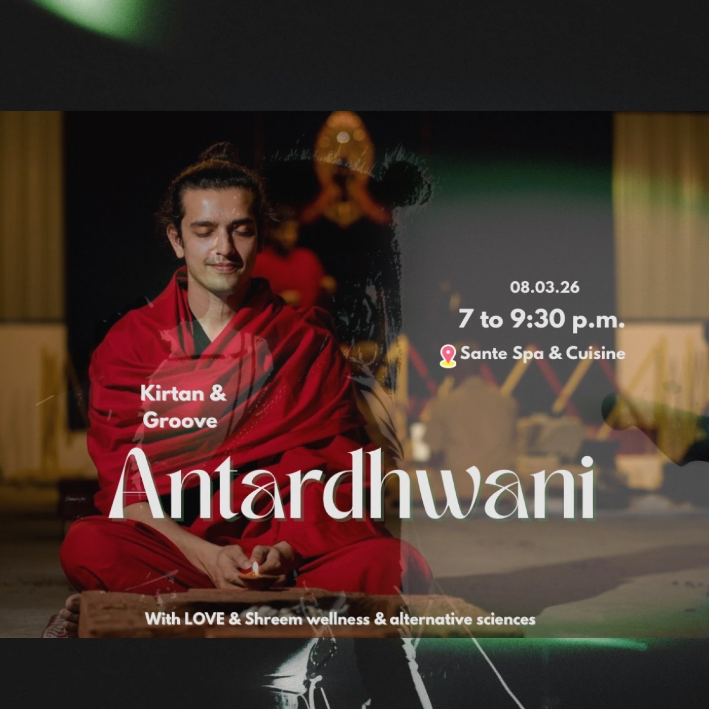 This is a soulful bhajan and kirtan event, where we all come together and groove (free spirited dance and movements) on beautiful RadheKrishna, Shiv and spiritual bhajans and melodies sung by Love Naik.