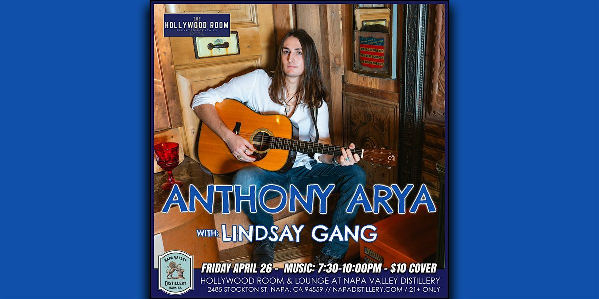 Join us on Friday April 26th as we welcome Bay Area's Anthony Arya (as seen on NBC's THE VOICE) join us in the Hollywood Room lounge with up and coming starlet and Napa local Lindsay Gang!