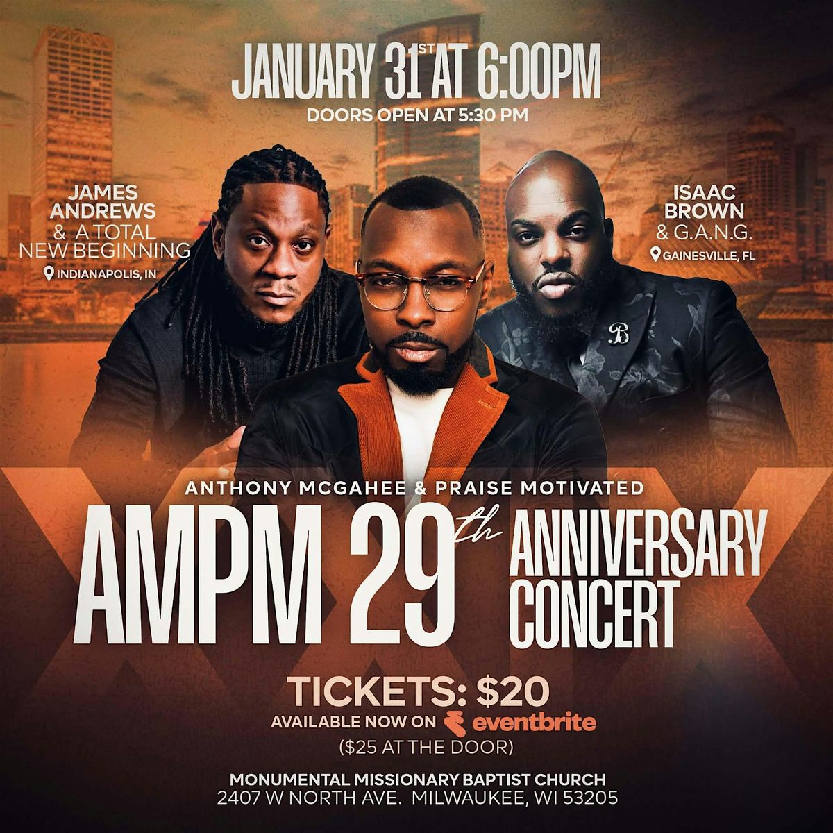 Join us for a powerful, Spirit-filled night of praise as AMPM celebrates 29 yrs of ministry with anointed guests and unforgettable worship!About this Event
