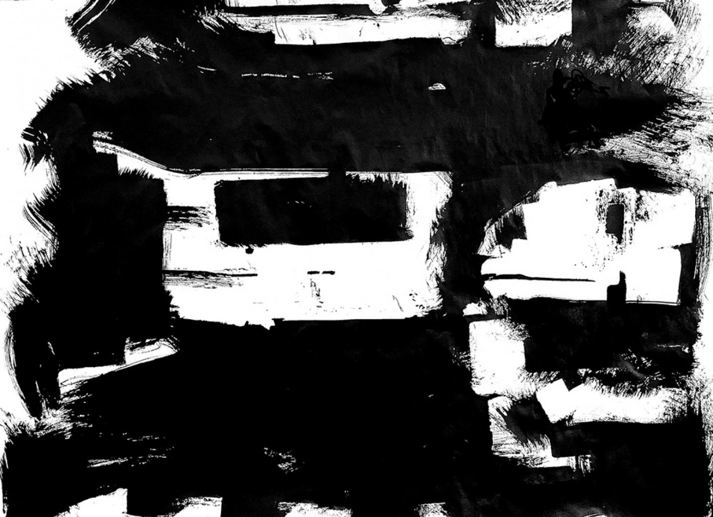 Selected Works on Paper 2025-2026 is his perspective of the world, revealed through a series of varied, at times random, subjects. Anthony, also a filmmaker, noted, “Creating the pieces for this exhibit felt much like exploring the inner, interpersonal, and societal perspectives of a character in one of my films”. Figurative images are used to symbolically convey his point of view. The medium of Sumi ink on paper presents a simplified black and white palette, producing blunt graphic imagery in an almost Rorschach-like form of communication.