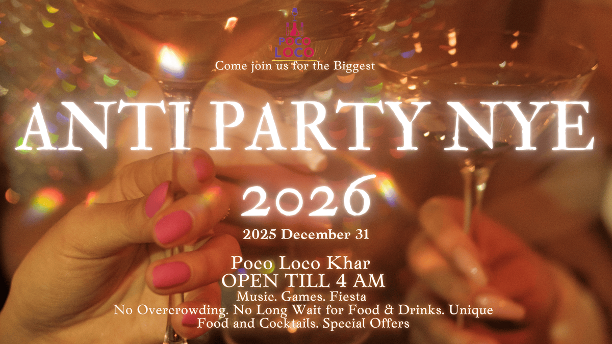 Not into loud countdowns, overcrowded rooms, or forced fun?This New Year’s Eve, do it differently.Welcome to Anti Party NYE 2026 — a night for people who prefer good drinks over gimmicks, comfort food over chaos, and real conversations over noise.No overcrowding.No long waits for food or drinks.Just great music, games, unique food, and signature Poco Loco cocktails flowing through the night.Come late, stay longer, sip slower, and welcome the new year your way — relaxed, unhurried, and full of good energy.Special NYE offers all nightNo hype. No rush. Just vibes.