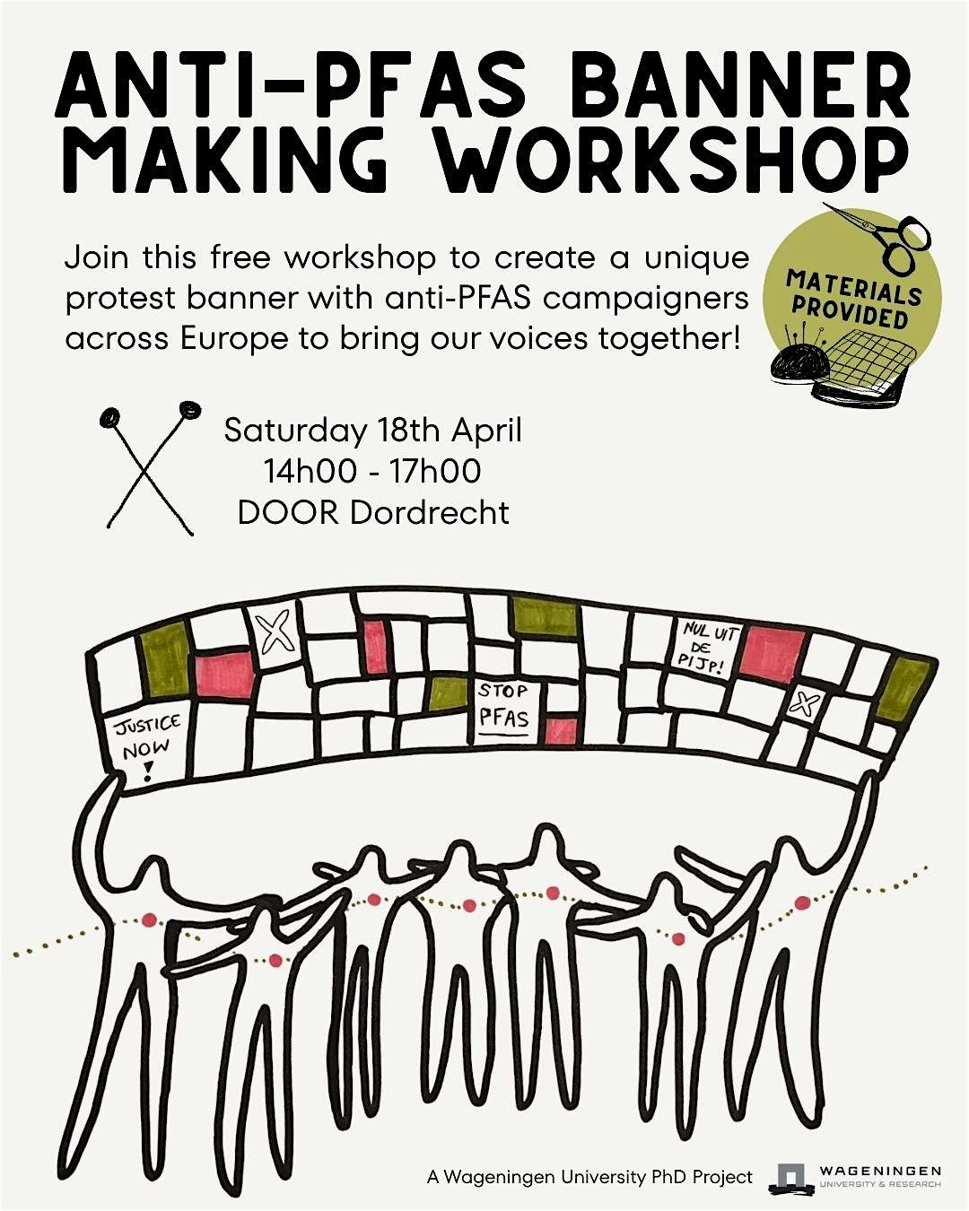 Het project bestaat uit de co-creatie van een protestbanner die PFAS-actiegroepen in Nederland, België, Frankrijk en Italië met elkaar verbindt. Dit evenement maakt deel uit van een reeks workshops die worden gehouden in Dordrecht, Antwerpen, Lyon en Veneto om verhalen/patches voor de banner te verzamelen. Er zal nog een workshop zijn in Dordrecht op zaterdag 13 juni.