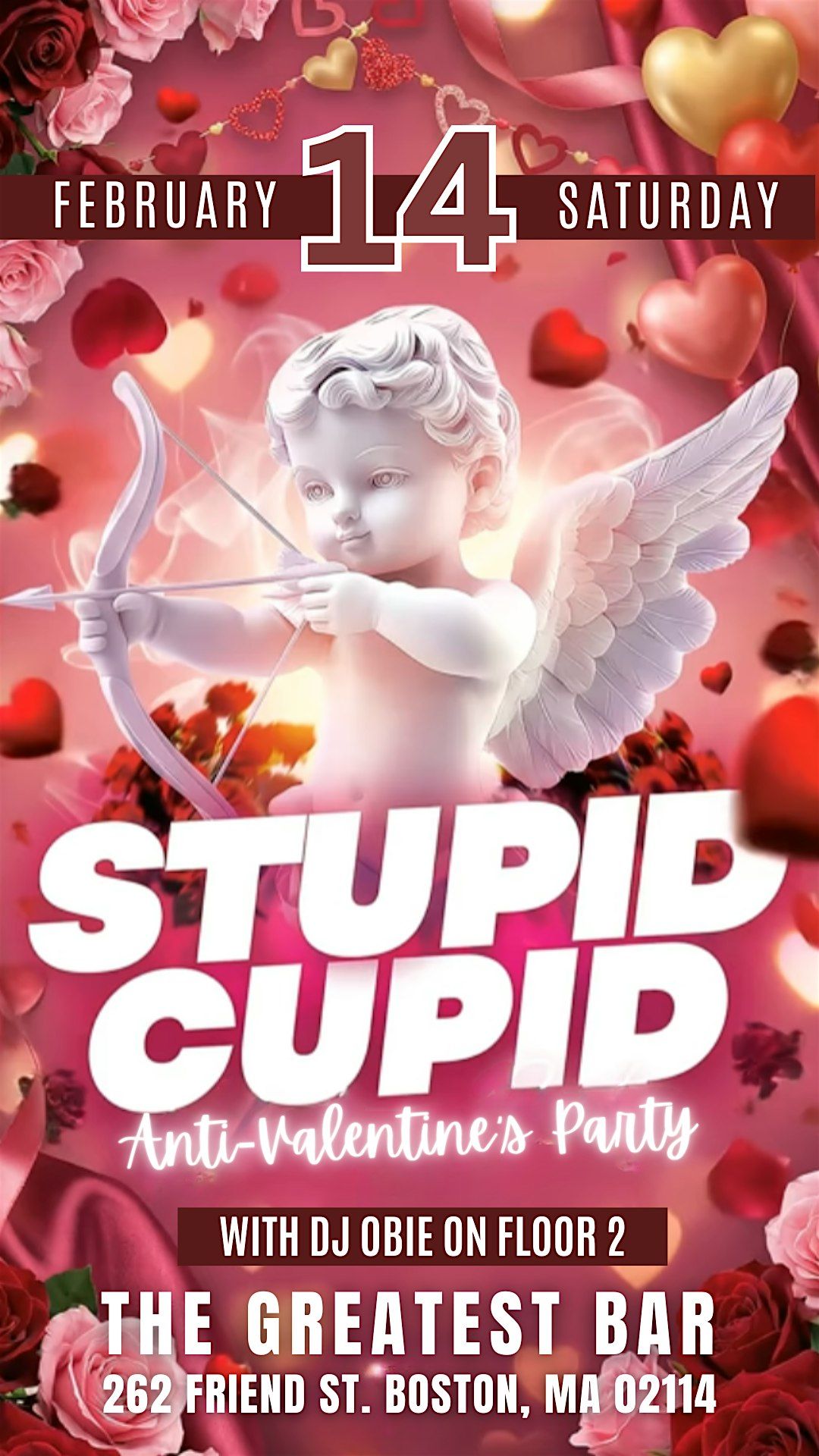 Who needs romance when you have great music, strong drinks, and a packed dance floor? Stupid Cupid is Boston’s ultimate Anti-Valentine’s Day party — made for the singles, the heartbroken, and anyone who’s just over it.