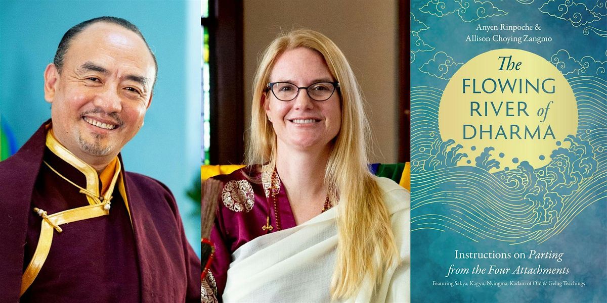 Anyen Rinpoche and Allison Choying Zangmo will speak about and sign their new book, The Flowing River of Dharma: Instructions on Parting from the Four Attachments Featuring Sakya, Kagyu, Nyingma, Kadam of Old, and Gelug Teachings, on Tuesday, February 10th at 6:30pm, at Boulder Bookstore.