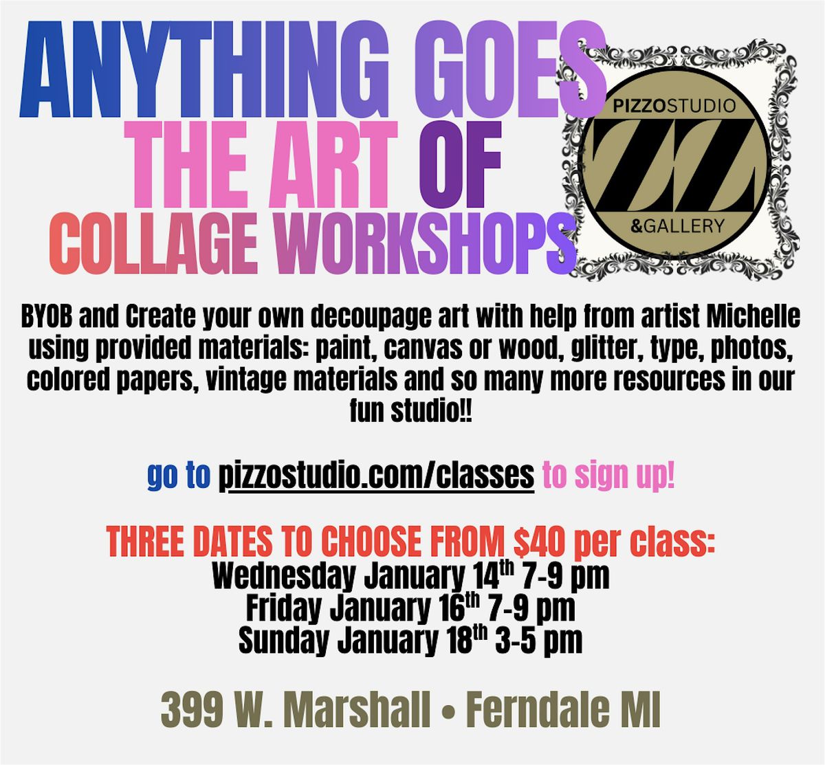 Create unique art in our fun studio with wood/canvas/paper/paint/glitter/type/vintage images and more with help of artist Michelle.