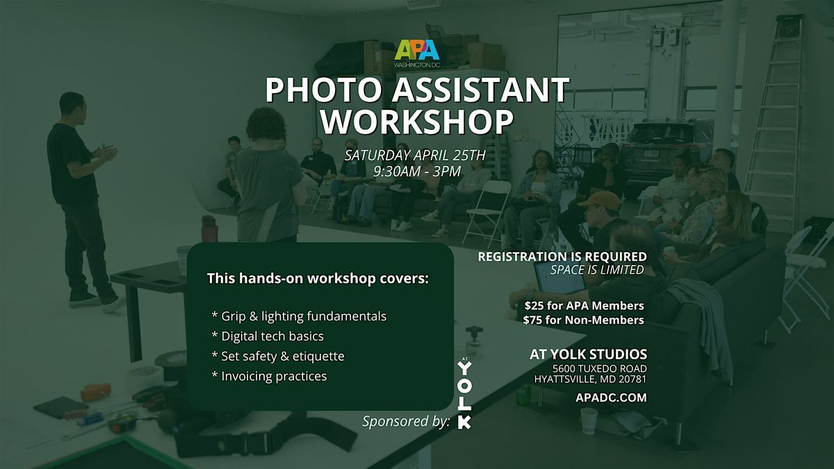 Join APA | DC on Saturday, April 25th at AT YOLK studios for our Annual Photo Assistant Workshop — a hands-on learning experience designed to help you succeed in the commercial photography space. Learn the skills, make the connections, and step confidently onto set.