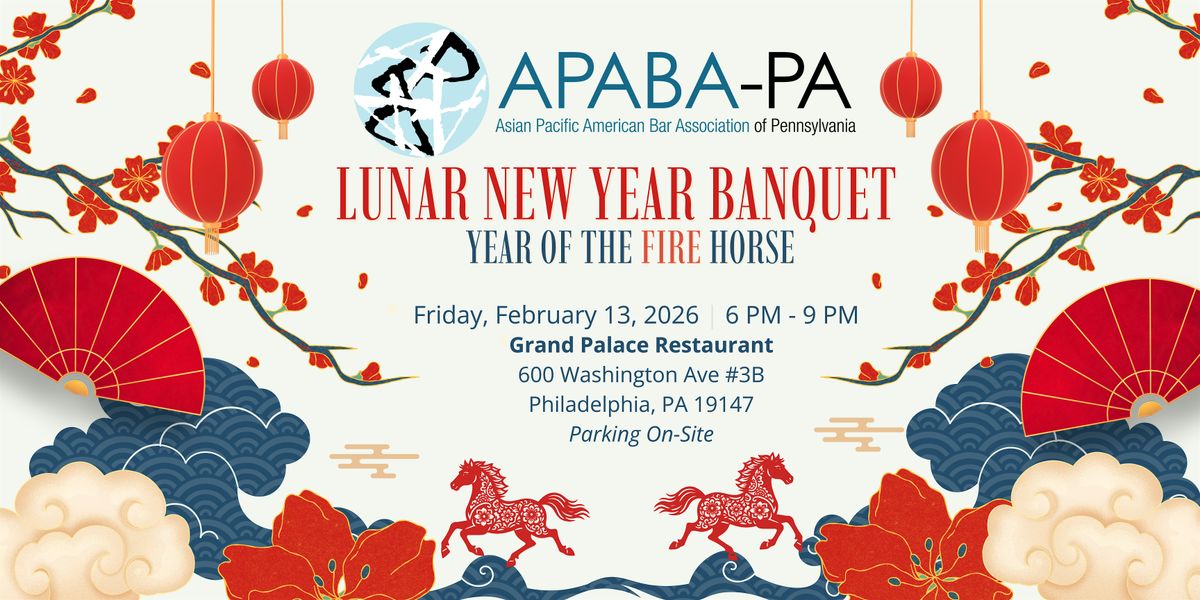 Celebrate the Year of the Fire Horse with the Asian Pacific American Bar Association of Pennsylvania (APABA-PA) at Grand Palace Restaurant in South Philadelphia, featuring a ten-course dinner, a lion dance performance by the Philadelphia Suns, and traditional live music.