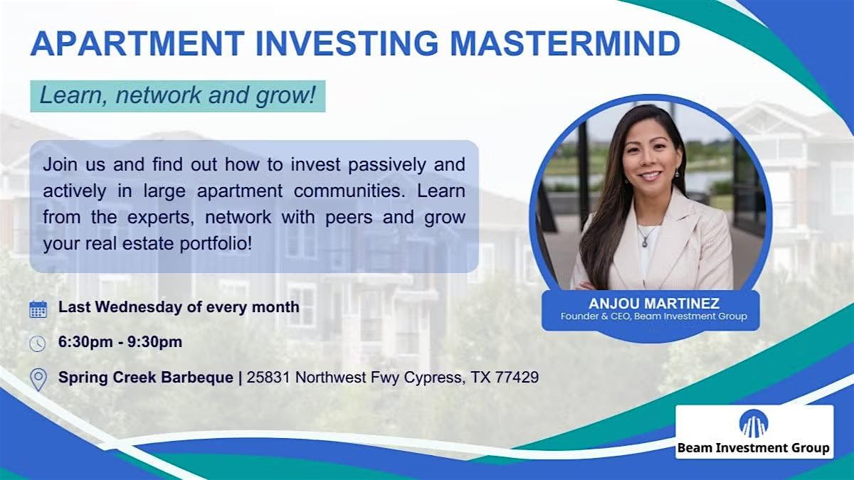 Come join us every month to learn, network and grow! We will have dinner, expert panels, case study, pitch night, networking and Q&A. Meet and learn from people who already own thousands of apartment units and have raised millions of dollars to buy large apartment communities.