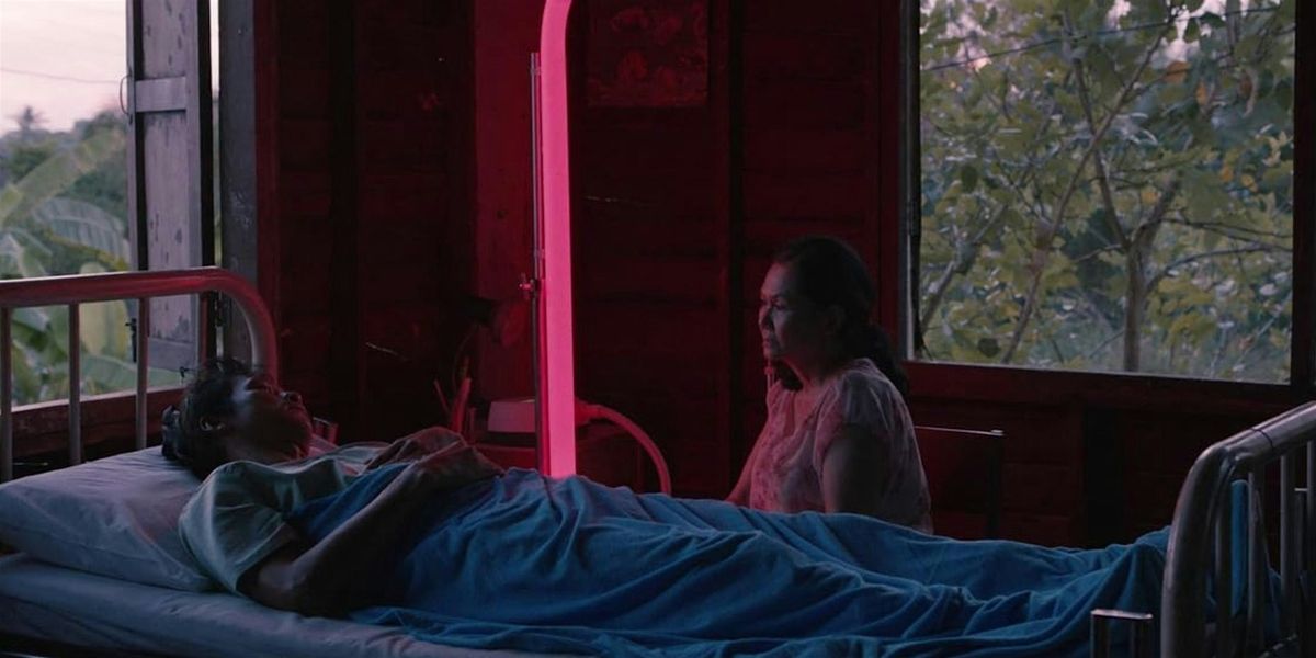 A hypnagogic masterwork, CEMETERY OF SPLENDOR exemplifies Apichatpong Weerasethakul's singular cinematic language—one rooted in stillness, spiritual curiosity, and the porous boundaries between the visible and invisible. Central to Weerasethakul’s work is the idea of a secret world—whether historical, political, or metaphysical—hidden just behind our visible one, and his films gently peel back reality’s surface to reveal these submerged layers. Gorgeous, tender, and oneiric, his films drift effortlessly between the everyday and the mythic, blending folklore, political memory, and personal reverie into a hypnotic whole. With a rhythm as seemingly attuned to breath and somatic sensation as narrative propulsion, Weerasethakul invites viewers into a meditative state, where time loosens and meaning arrives obliquely, like a dream remembered upon waking. Here, this approach crystalizes into something profoundly resonant, an exploration of slumber—private, vulnerable, and collective—as a permeable site of connection, where memory, fantasy, and history entwine while the living, the dreaming, and the long-buried quietly converge.