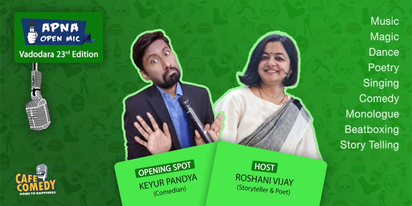 Apna Open Mic (Vadodara - 23rd Edition) is the Open Mic Platform brought to you by Cafe Comedy.