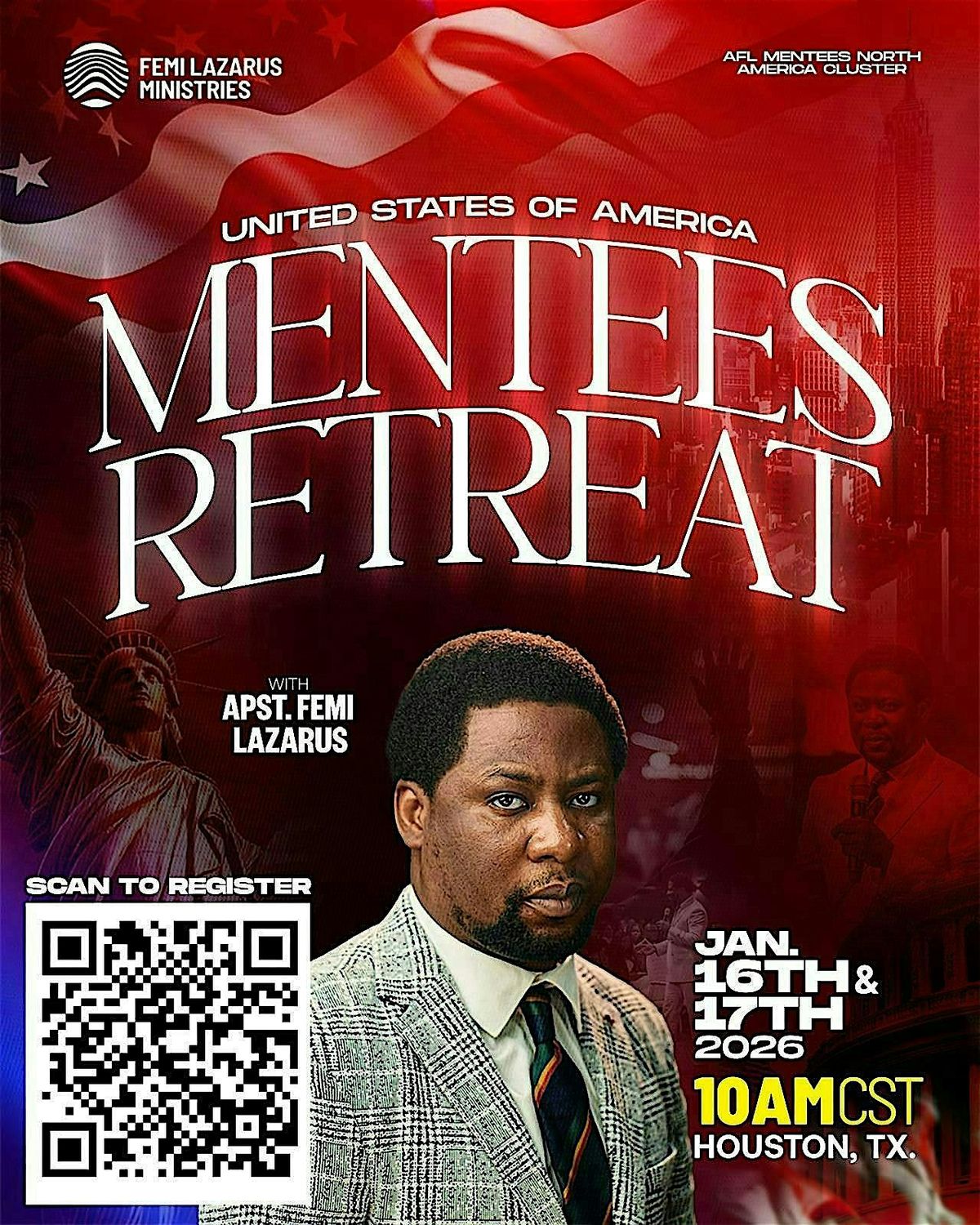 Join us for this closed-door, in-person meeting with Apostle Femi Lazarus in Pattison, TX. Far away from the noise and distractions, it is an invitation to withdraw, be still, and plug in to a time of refreshing.