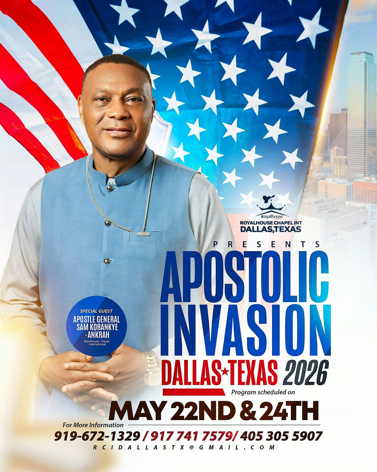 Hey there! Join us in person for the APOSTOLIC INVASION taking over Dallas, TX. This is your chance to experience powerful worship, uplifting messages, and a vibrant community all coming together live. Donβt miss out on this incredible gathering where faith meets energy. Come as you are and be part of something unforgettable!