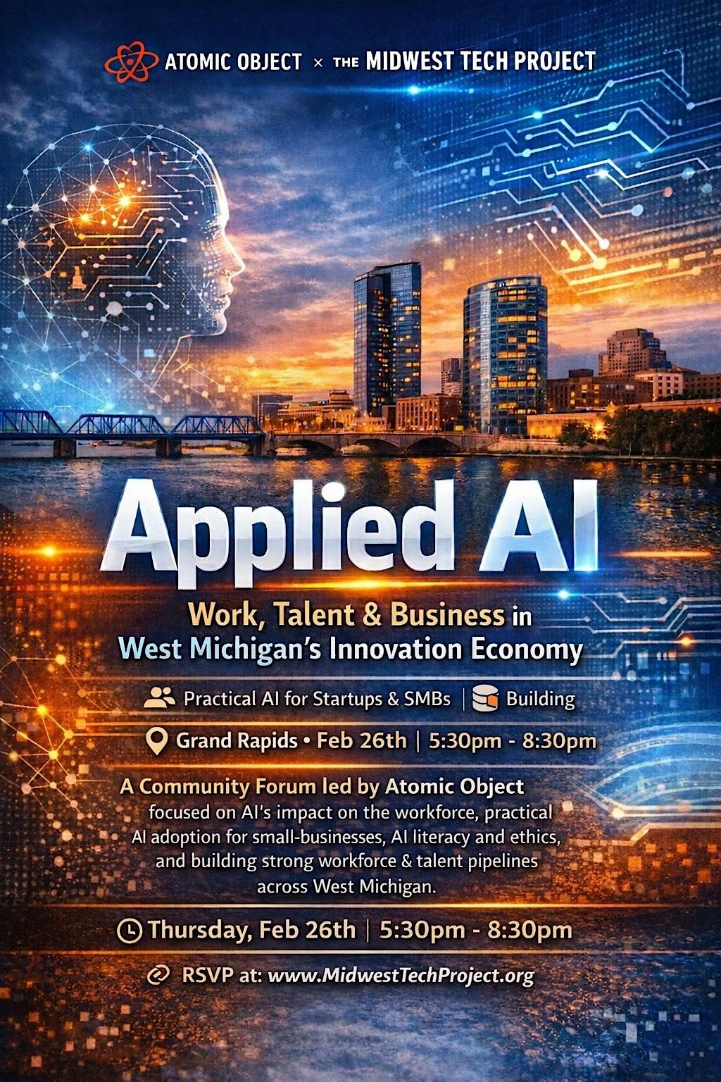 Join us for a community forum led by Atomic Object designed to explore how applied AI is influencing West Michigan’s workforce and innovation economy today.