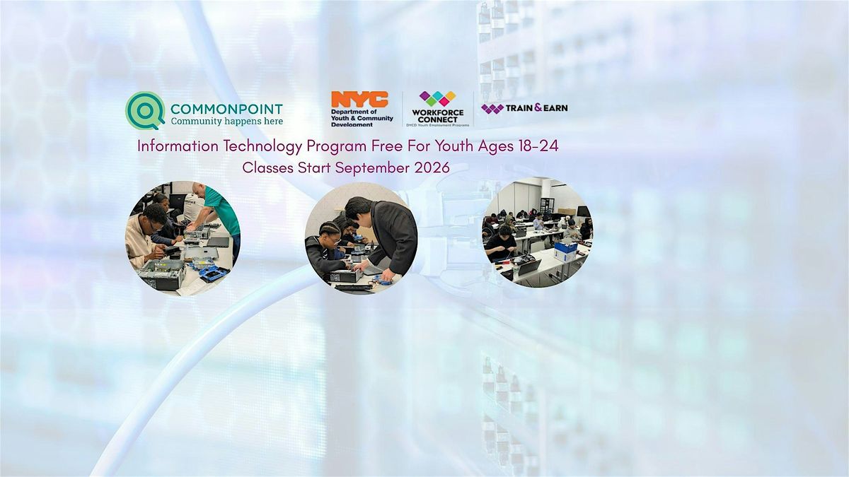 Free IT certifications for ages 18–24 at Commonpoint in Queens NYC. Classes start September 2026.