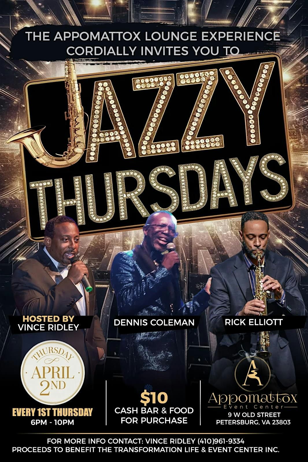 Get Ready, because your Thursdays just got a whole lot smoother and a little exciting. Wind down with Smooth Live Jazz and Classic Soul as The Appomattox Lounge Experience presents "Jazzy Thursdays" featuring Dennis Coleman and Rick Elliott. Your monthly destination for soul-stirring melodies and smooth vibes.